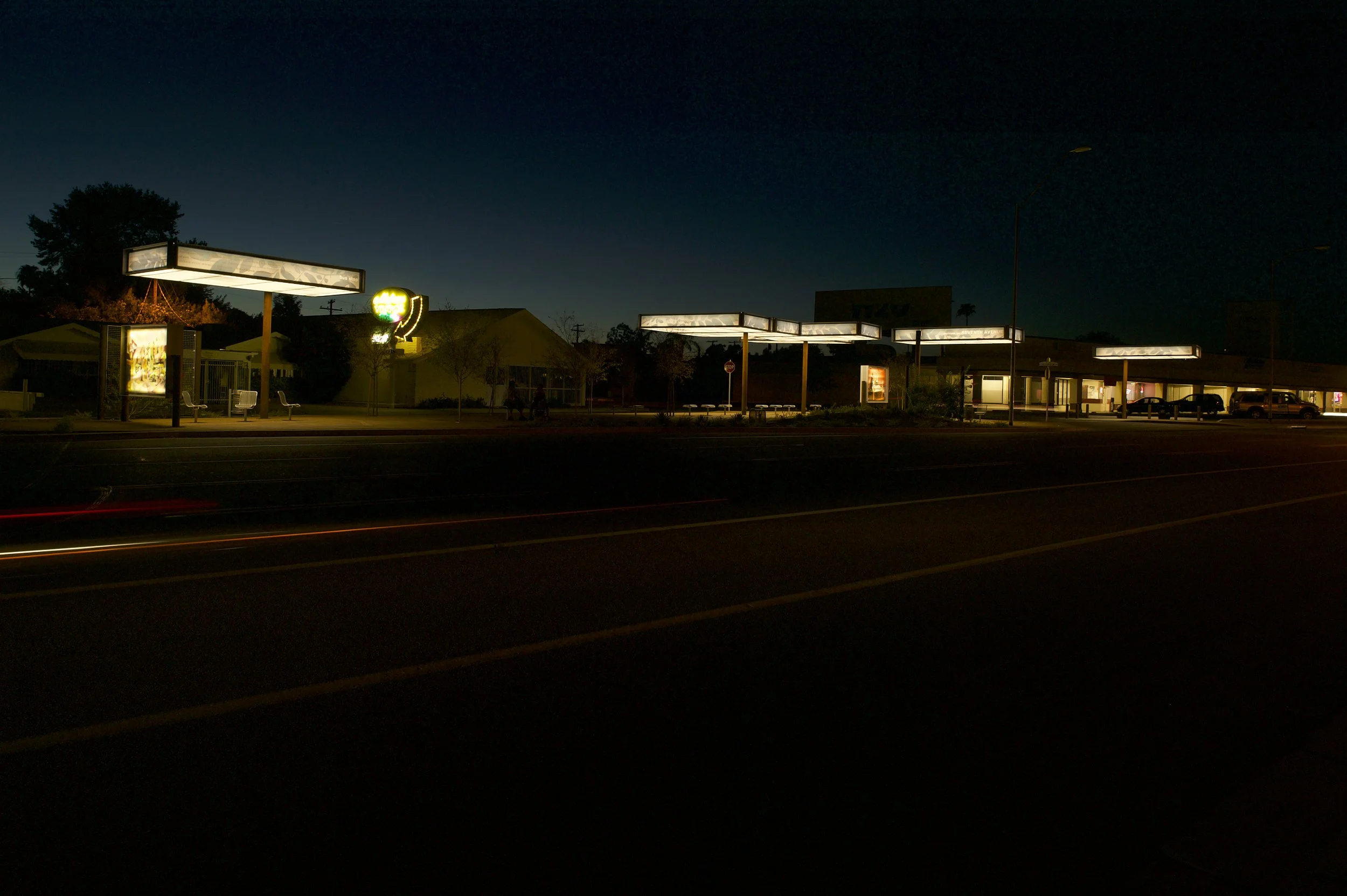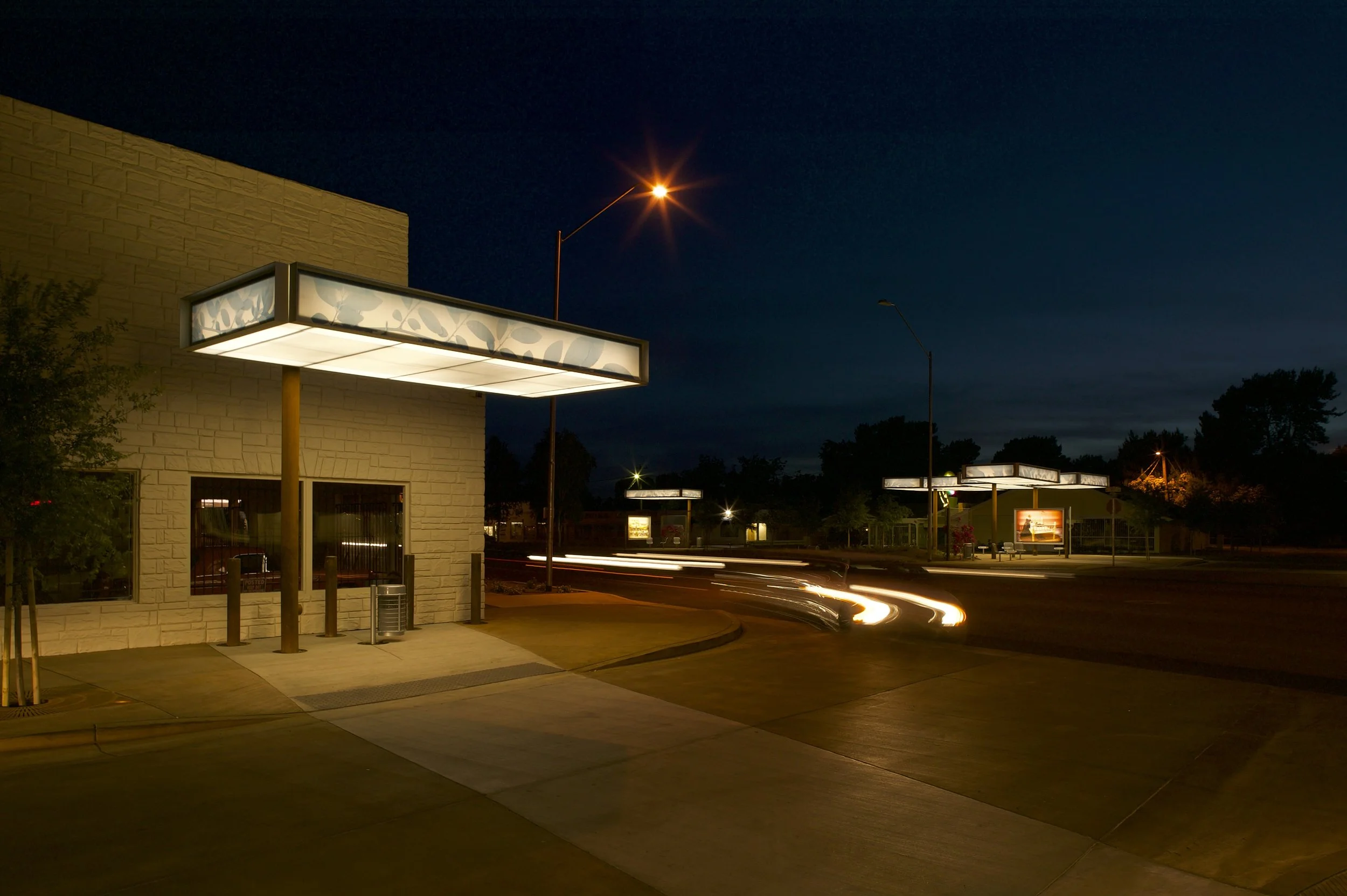 A new typology of pedestrian amenities along the 7th Avenue corridor in the Melrose Neighborhood. Inspired by the billboards that litter the strip, new horizontal illuminated shading signs called ‘Lampshades’ are deployed strategically, forming bus stops, pedestrian crosswalk shading, and display areas along the commercial corridor. Built by the City of Phoenix and maintained by the Seventh Avenue Merchants Association (SAMA), these new desert city amenities create an identity for the neighborhood. The Lampshades are paired with illuminated art panels that change annually via competition among local artists. These panels provide horizontal shade for early morning and late afternoon sun. Coupled with the art panels are vertical vine screens that also provide horizontal shade and a micro-climate created through evapotranspiration. Combined, these new pedestrian infrastructures provide amenities in the form of shade, display, and gathering on an otherwise car-centric landscape.